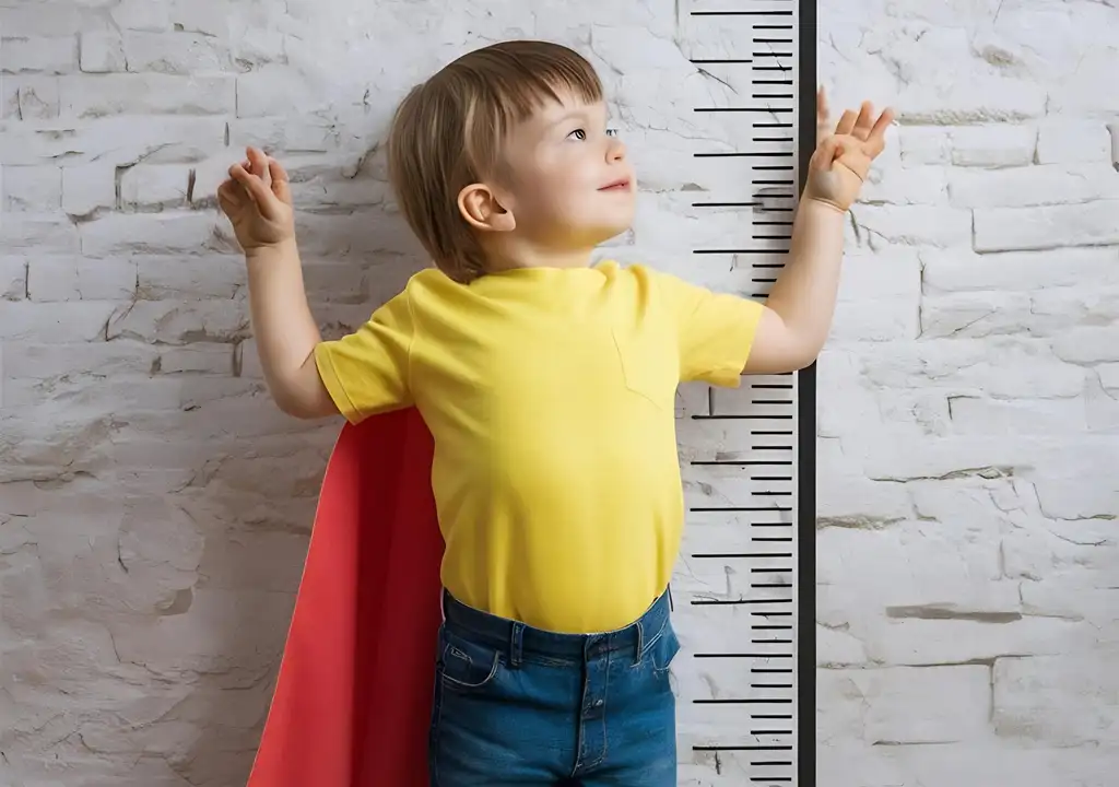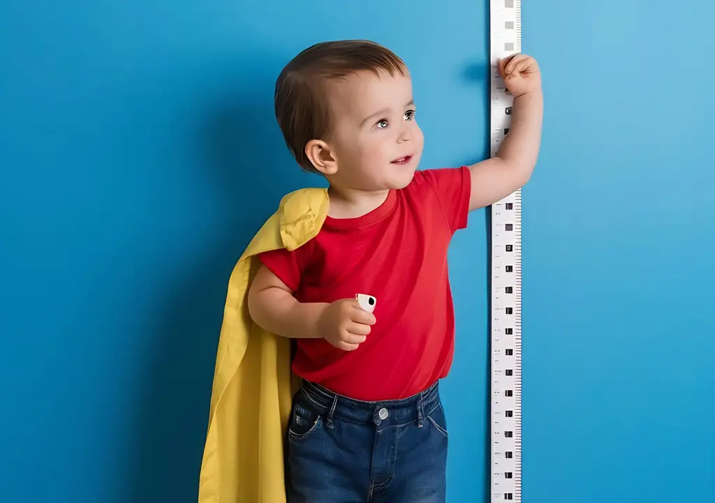 Altura: Haz que tu hijo se ponga de pie descalzo, con los pies juntos y la espalda recta. Usa una cinta métrica desde el talón hasta la parte superior de la cabeza.