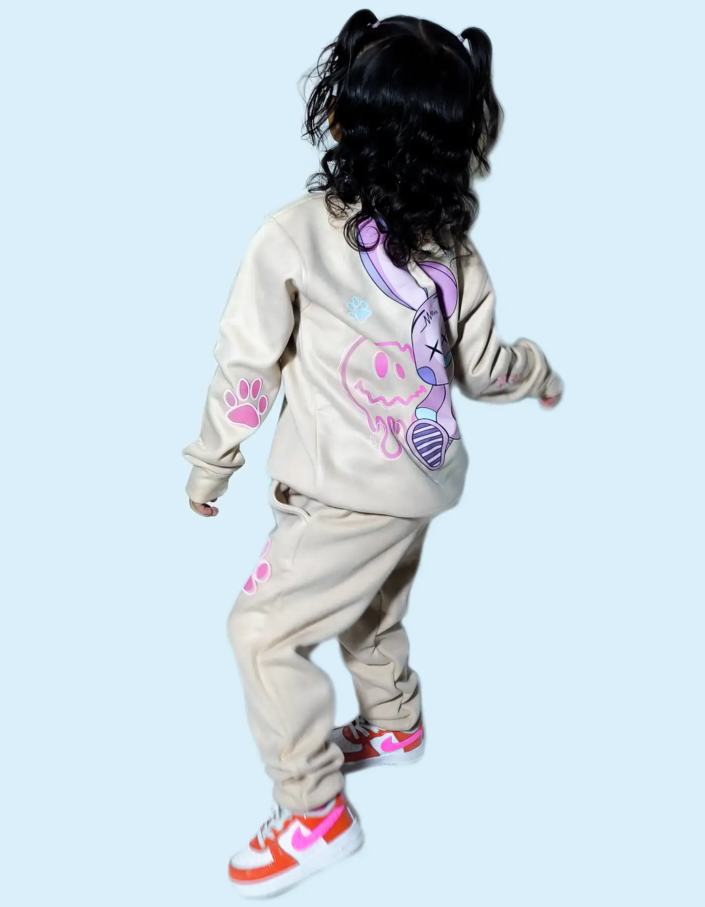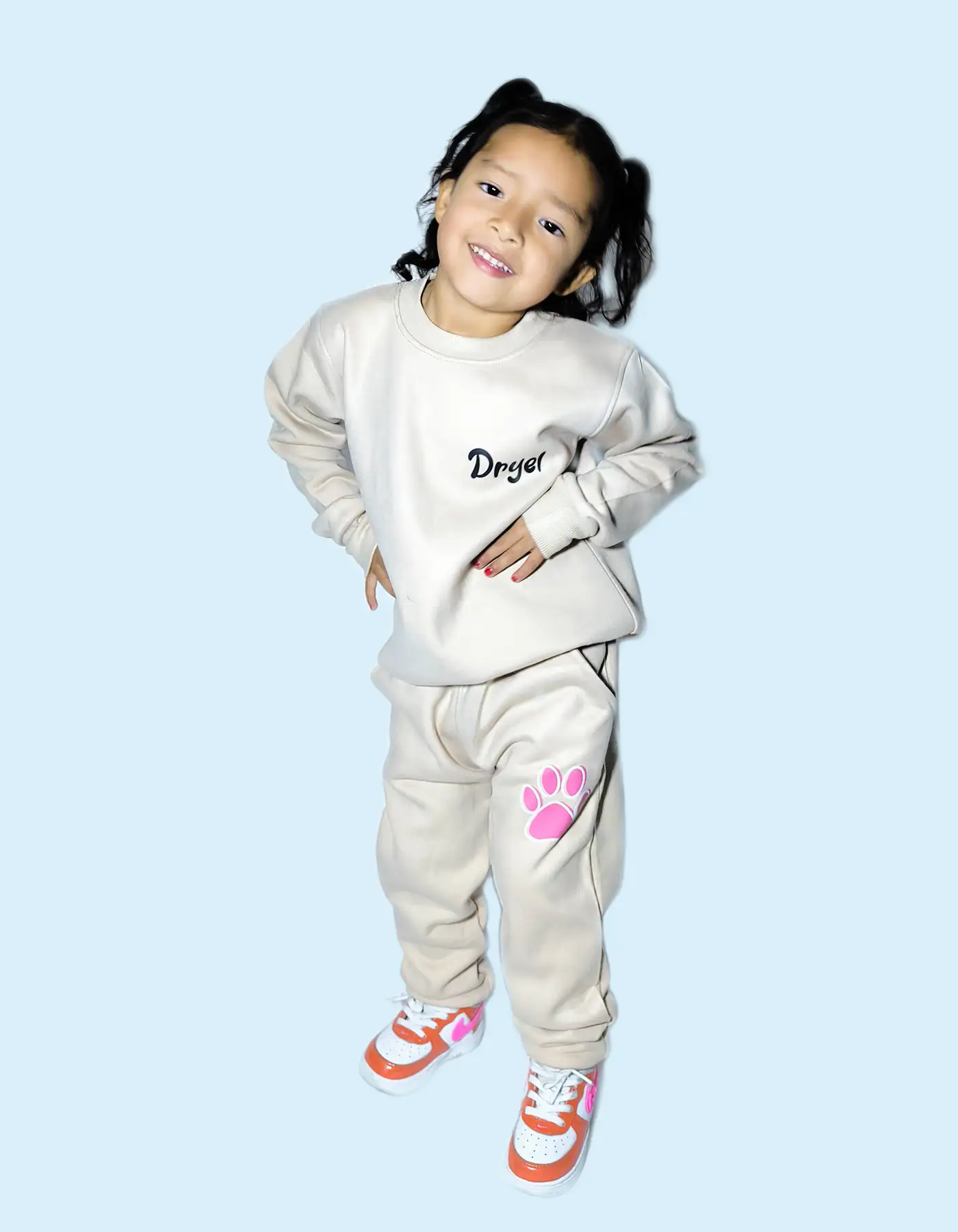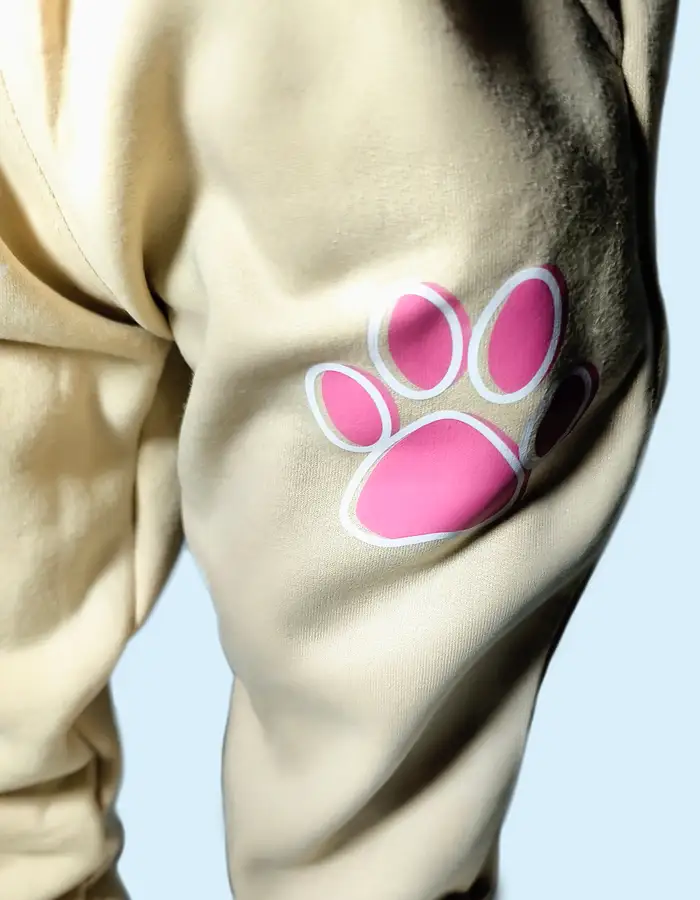 - Joggers beige con un llamativo detalle de una huella rosada, que le da un toque divertido y original.
