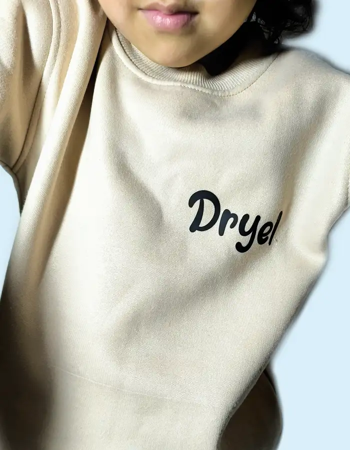 - Sudadera beige con el logo de Dryel, una prenda básica y moderna para el día a día.